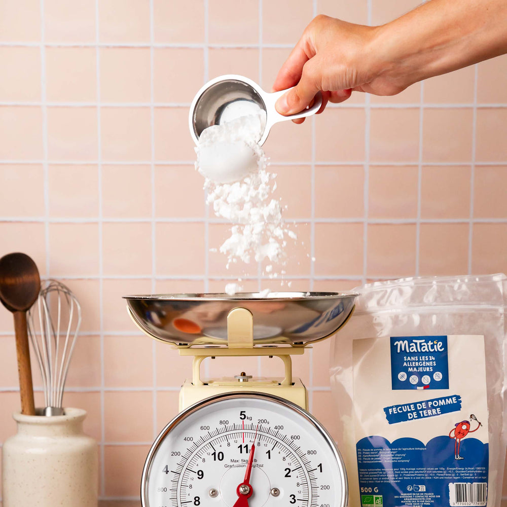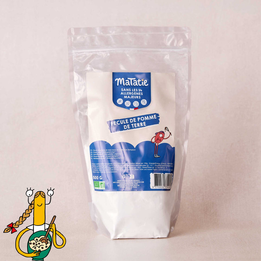 Fécule de pomme de terre sélectionnée avec soin, sans les 14 allergènes majeurs ni traces et bio