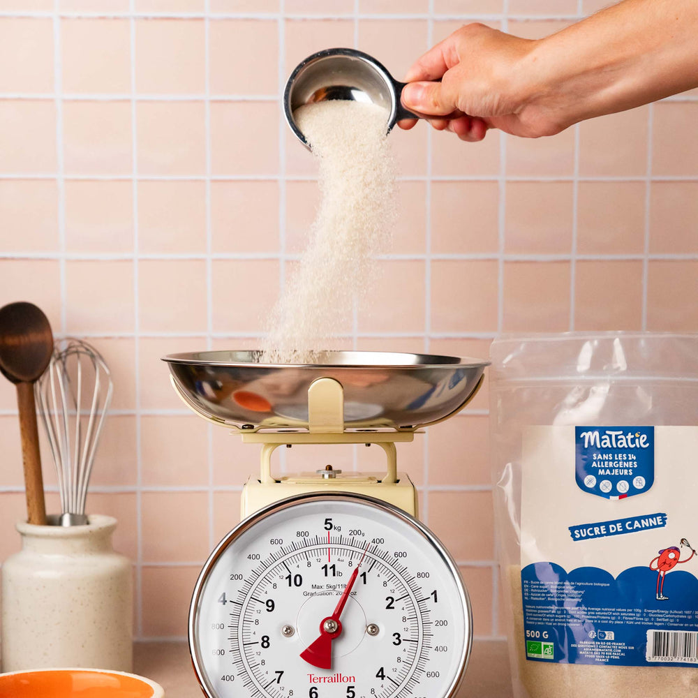 Sucre de canne blond sélectionné avec soin, sans les 14 allergènes majeurs ni traces et bio