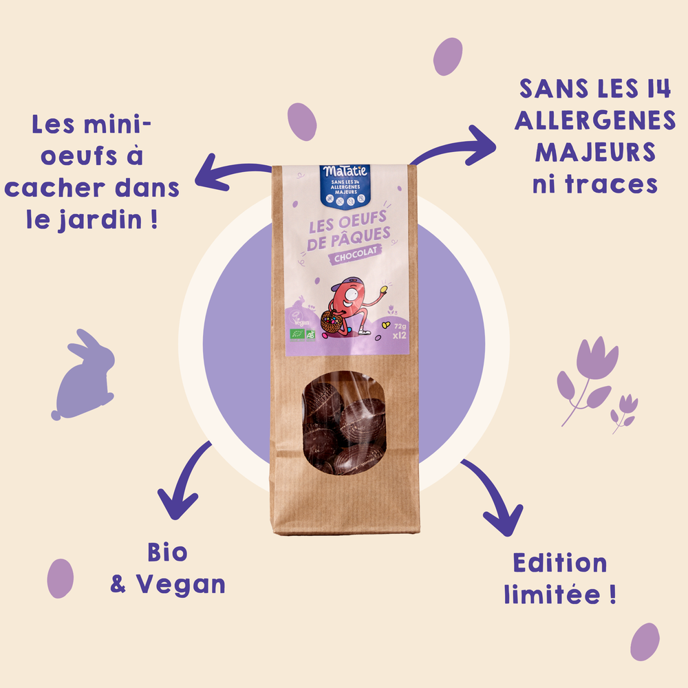 Cacher les chocolats dans le jardin, lancer la recherche, observer les yeux des enfants se remplir d'Ă©toiles : oui, fĂȘter PĂąques comme tout le monde est possible avec les produits que nous dĂ©veloppons spĂ©cialement pour l'occasion. Retrouvez nos chocolats dans les 14 allergĂšnes majeurs pour que les enfants allergiques (ou les adultes !) puissent se rĂ©galer en toute sĂ©curitĂ© !