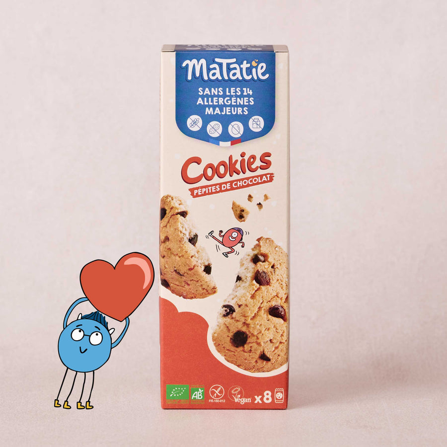 Cookies croquants aux délicieuses pépites de chocolat, sans les 14 allergènes majeurs et bio